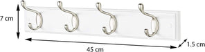 White Wooden Coat Rack – 4 Double Hooks, Wall or Door Mountable
