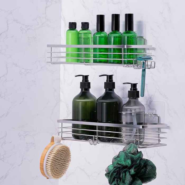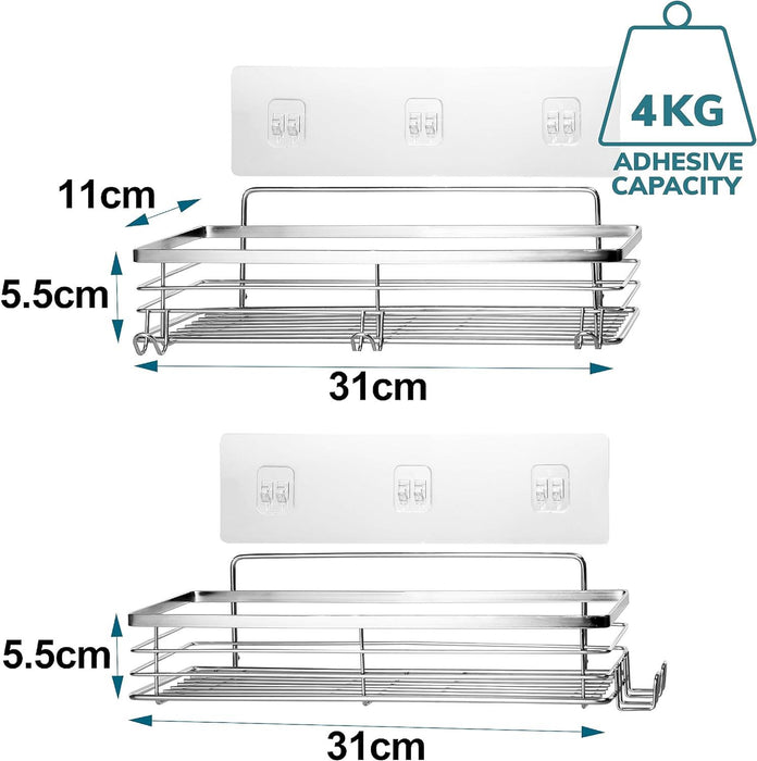 Set of 2 Stainless Steel Self-Adhesive Shower Caddies – Rust-Resistant Wall Storage
